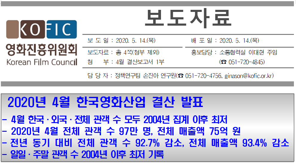 (20200514) 2020년 4월 한국영화산업 결산 발표