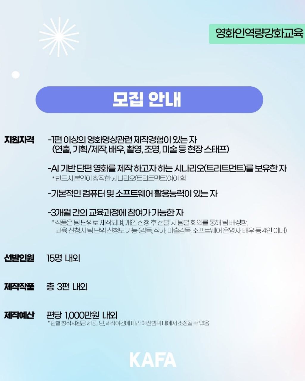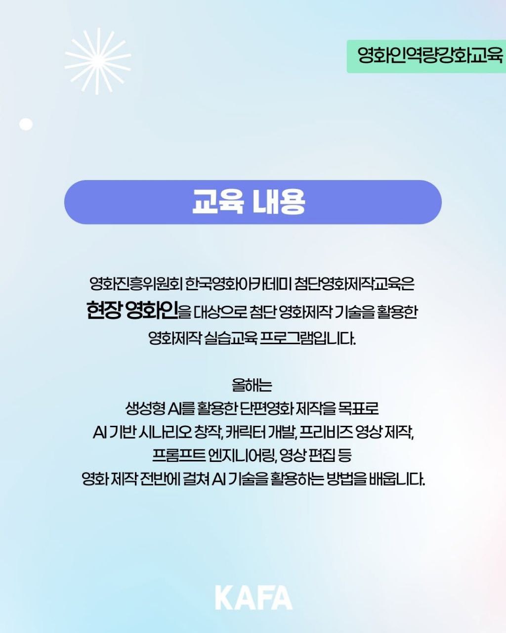 AI 활용 단편영화 제작교육의 일정과 모집 요강,