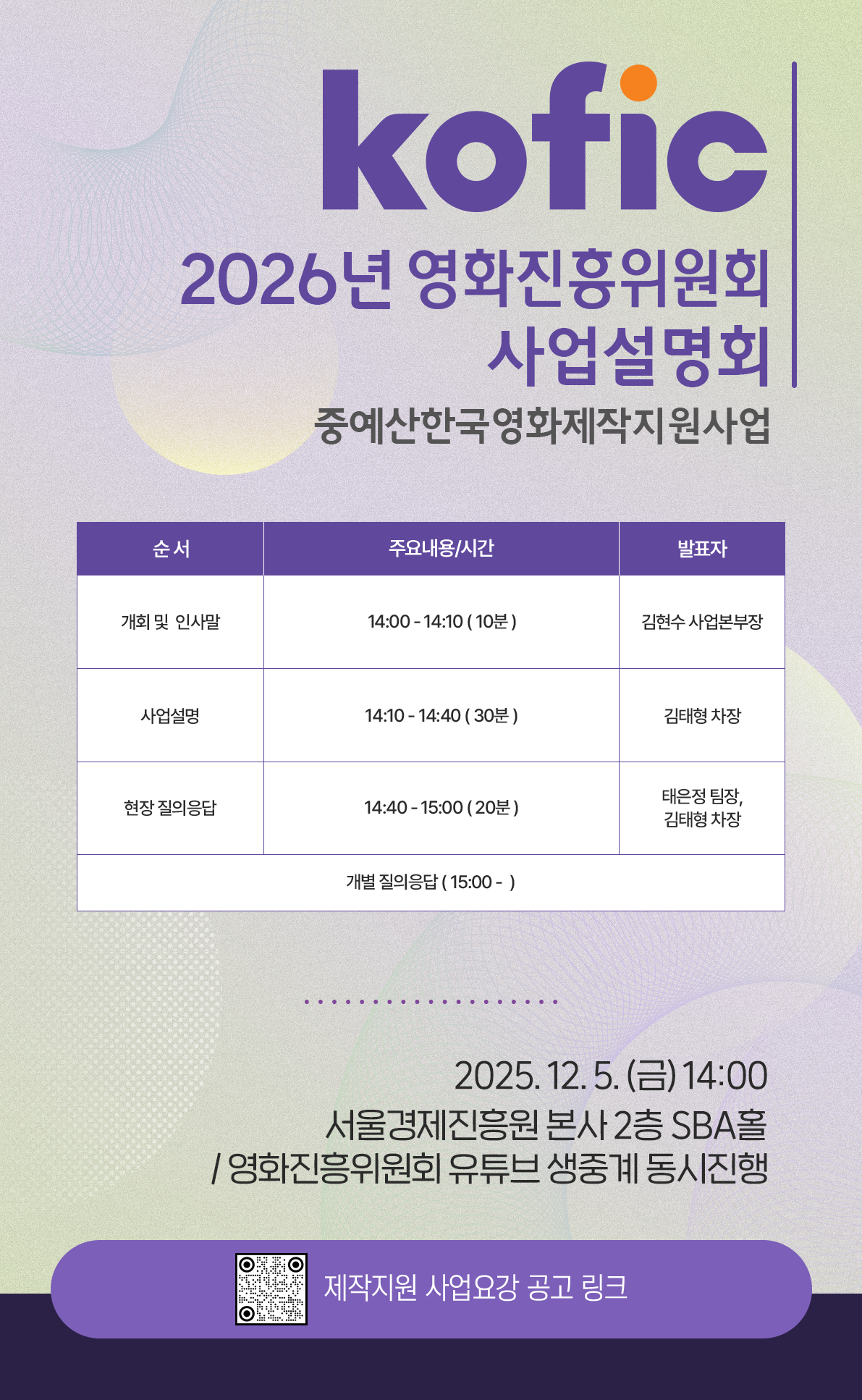 ㅇ 사업설명회 명칭 : 2025년 중예산 한국영화 제작지원 사업설명회